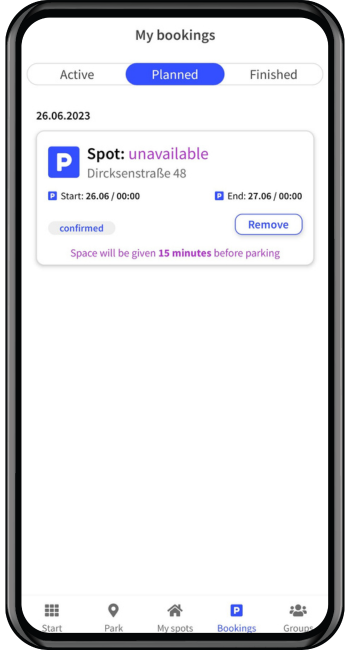 4. When someone reserves your spot you will receive a notification. If you want to cancel the reservation, click the trash can icon, then confirm the cancellation.