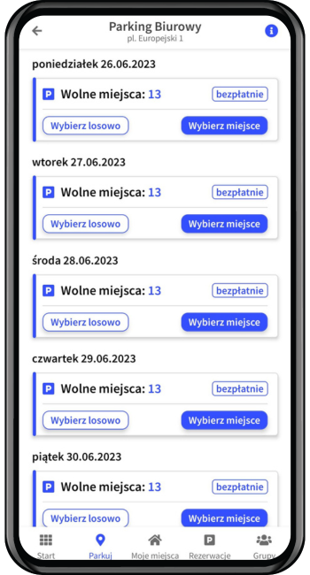 4. Po potwierdzeniu konta zostaniesz automatycznie przypisany do grupy, w której możesz zarezerwować miejsca parkingowe.