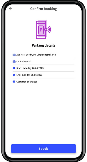 3. If you are parking for the first time, enter your car's license plate number and specify the type of drive, the other fields are optional. Remember that you can always add another car during the next reservation. Confirm your reservation by clicking "I book".