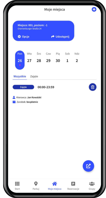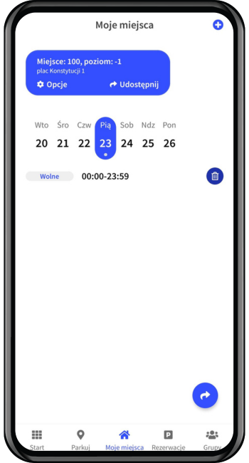 3. Kiedy chcesz anulować udostępnianie swojego miejsca, wystarczy że klikniesz ikonę kosza. Pamiętaj, że udostępnianie miejsca parkingowego trzeba anulować na każdy dzień.